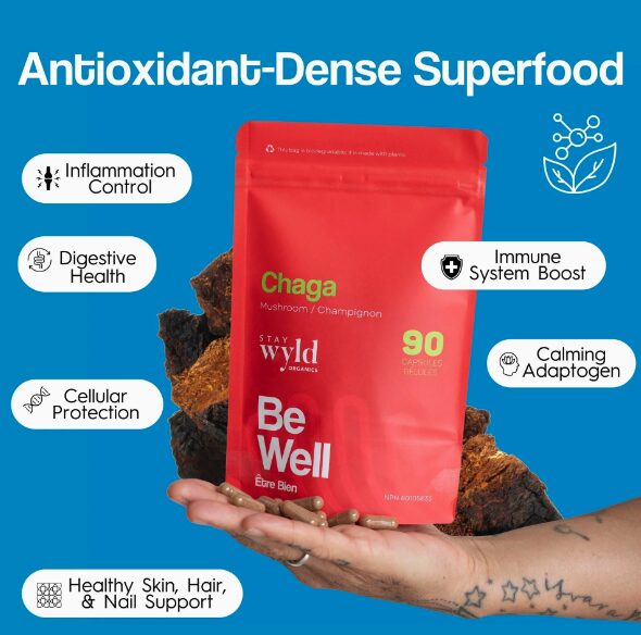Stay Wyld Organics – Chaga-Pilz-Kapseln (Beutel mit 90 Stück)